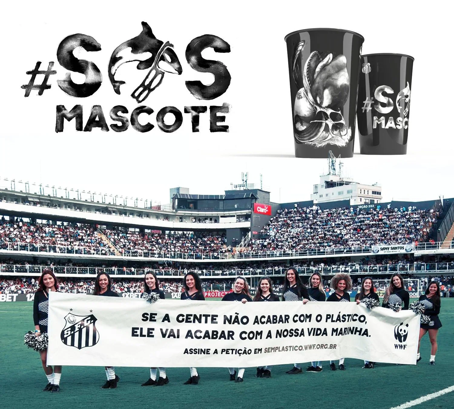 Para a WWF alertar as pessoas sobre os riscos da poluição de plástico nos Oceanos, nós escalamos o famoso mascote da Baleia do Santos F.C. durante um jogo do campeonato brasileiro. Ela entrou em campo presa no mesmo pedaço de plástico que mata milhares de animais nos mares todos os anos.